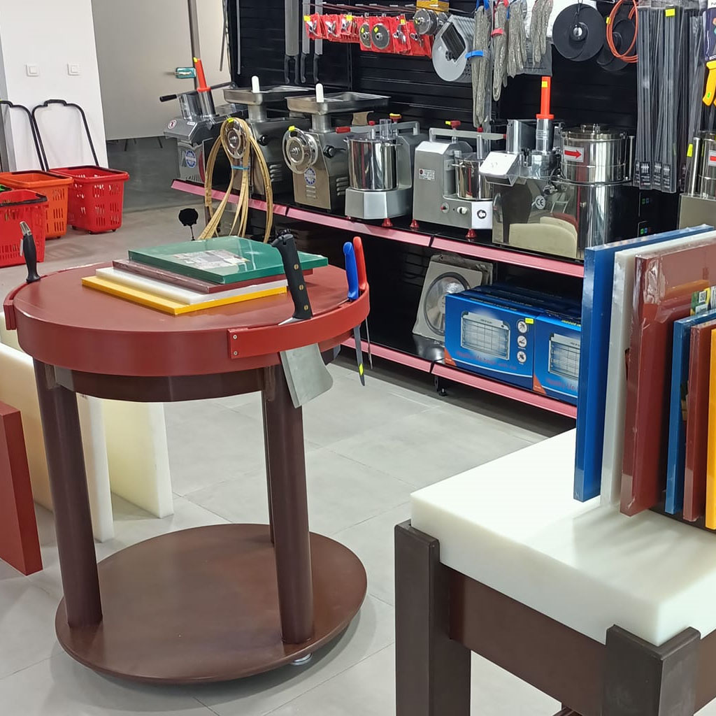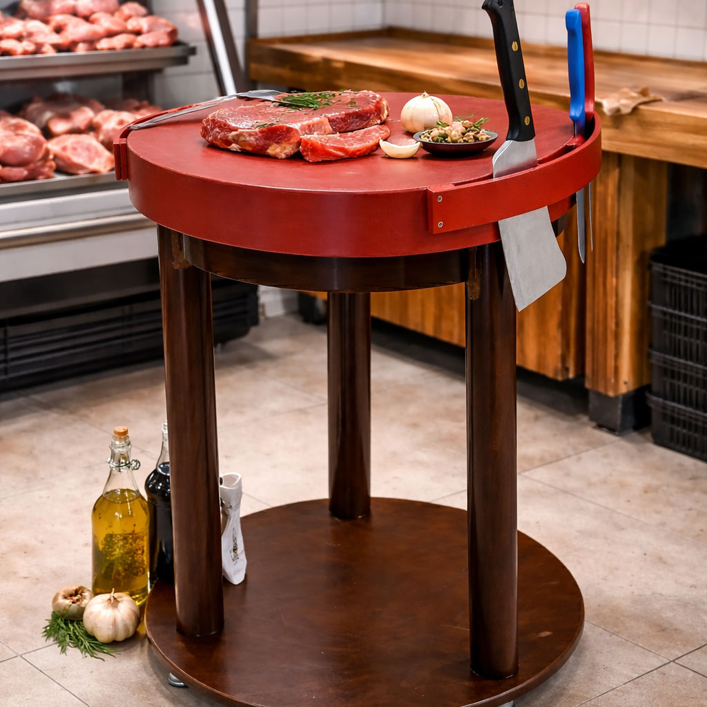 Découvrez notre billot de boucher circulaire en polyéthylène haute densité. Diamètre 80 cm, épaisseur 10 cm. Stable, hygiénique et équipé d’un porte-outils intégré. Idéal pour boucheries et cuisines pro.
