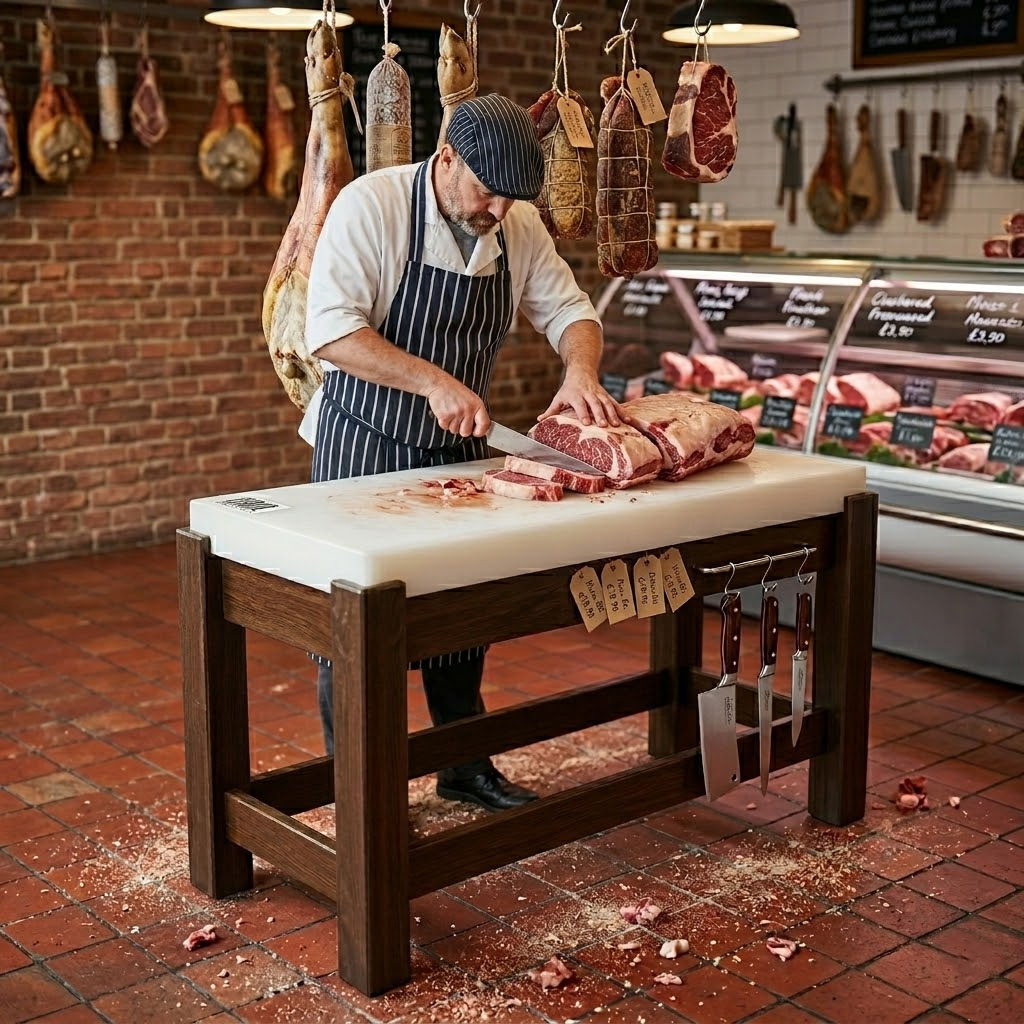 Confort de Travail : Sa hauteur de 93 cm est optimisée pour le travail de découpe quotidien, offrant une posture naturelle.