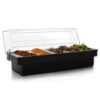 - Boîte à condiments avec couvercle à compartiments séparés et amovibles pour assurer un stockage hygiénique d’une capacité de 600ml par compartiment.