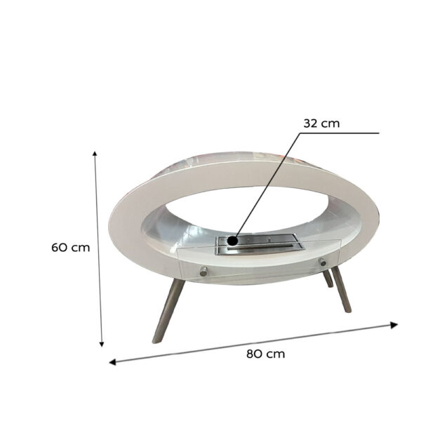Cheminée à l’éthanol amovible sur pieds – en acier inoxydable – une durée de consommation de’environ 4 heures – dimensions de 45x16x7cm – capacité du reservoir 2,5 litres