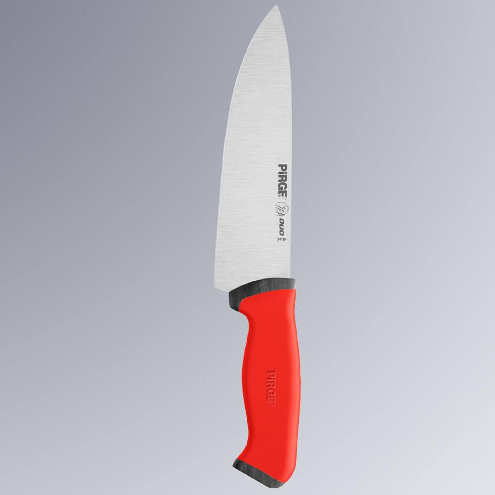 Couteau de boucher Duo Rouge 19cm de la marque Turque PIRGE – indispensable pour tous les cuisiniers amateurs et professionnels – Lame en acier inoxydable robuste et tranchante