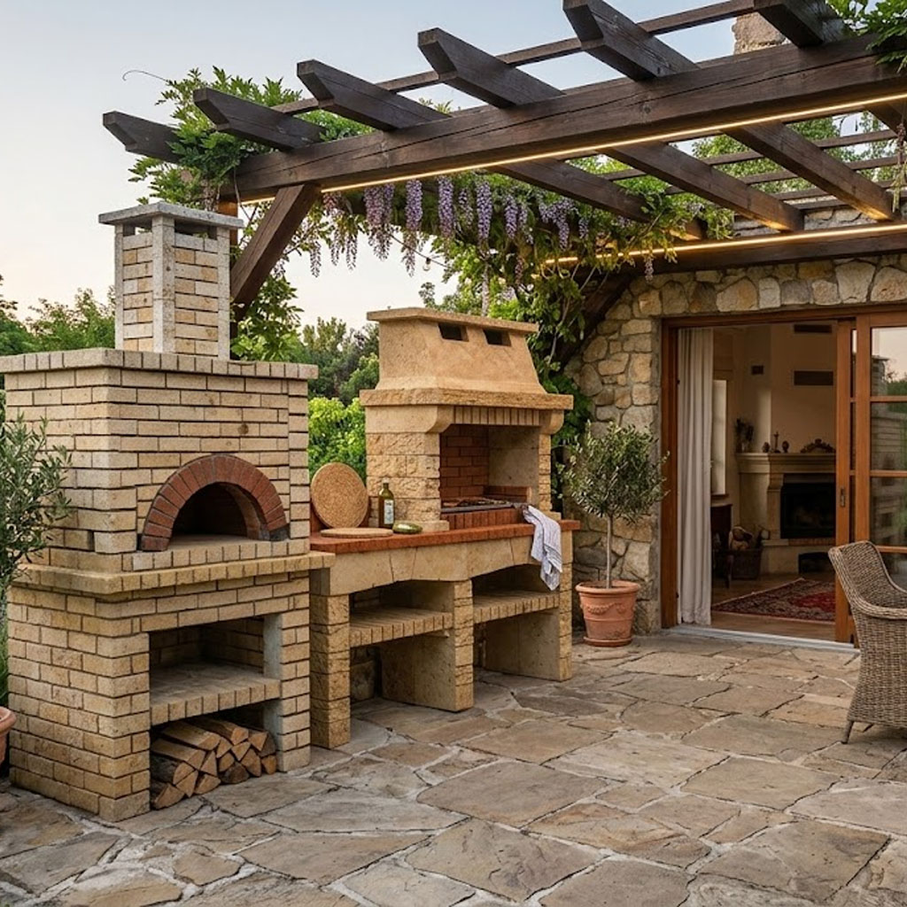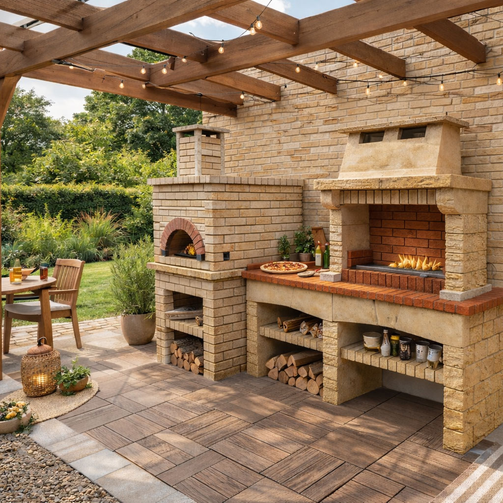 Cuisine extérieure en pierre et briques réfractaire