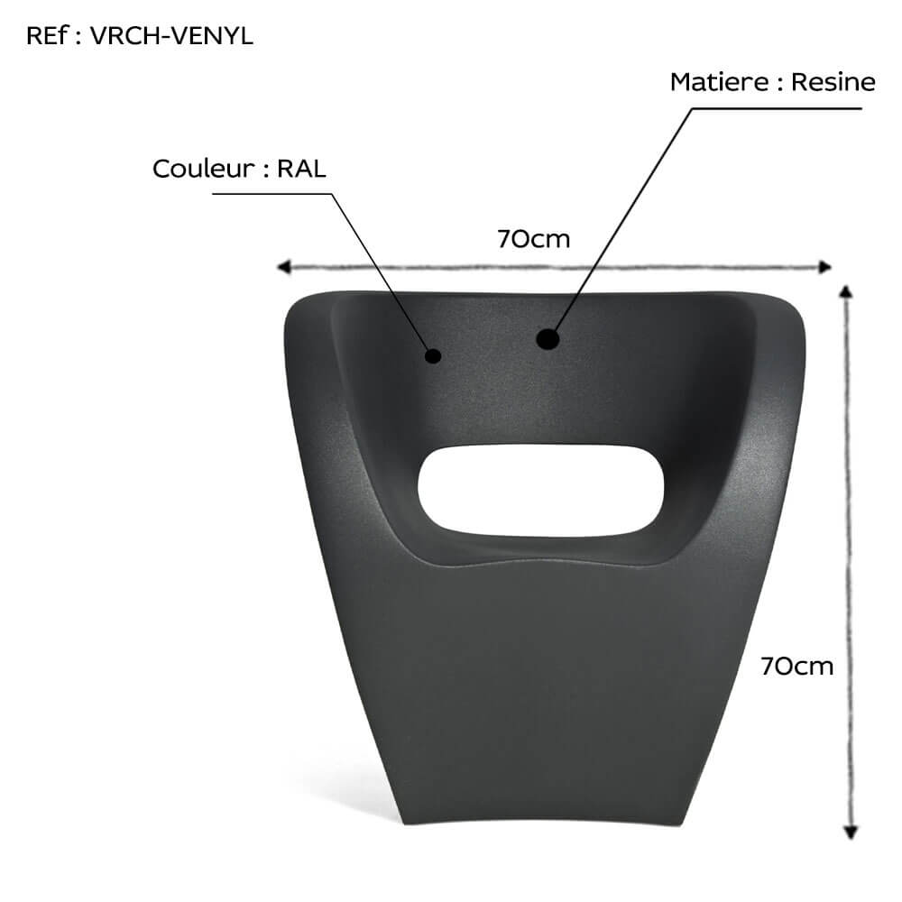 Fauteuil elégante en résine pour extérieur et intérieur, robuste et très confortable – Résistant aux températures extrêmes (-60ºC à +80ºC) – d’une dimension de H70 L70 cm