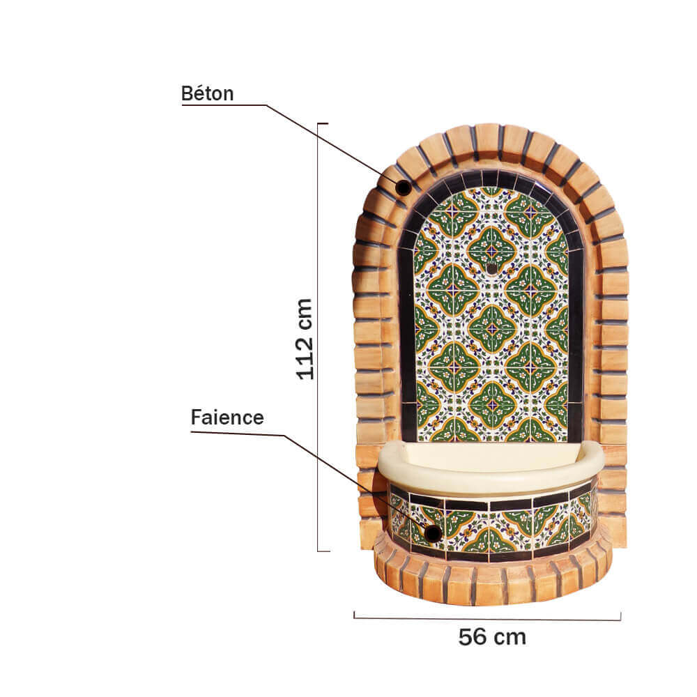 cette fontaine murale en faïence constitué en béton avec des retouches à la main, le modèle FM21 trouve toujours sa dimension dans n’importe quel espace dans votre jardin.