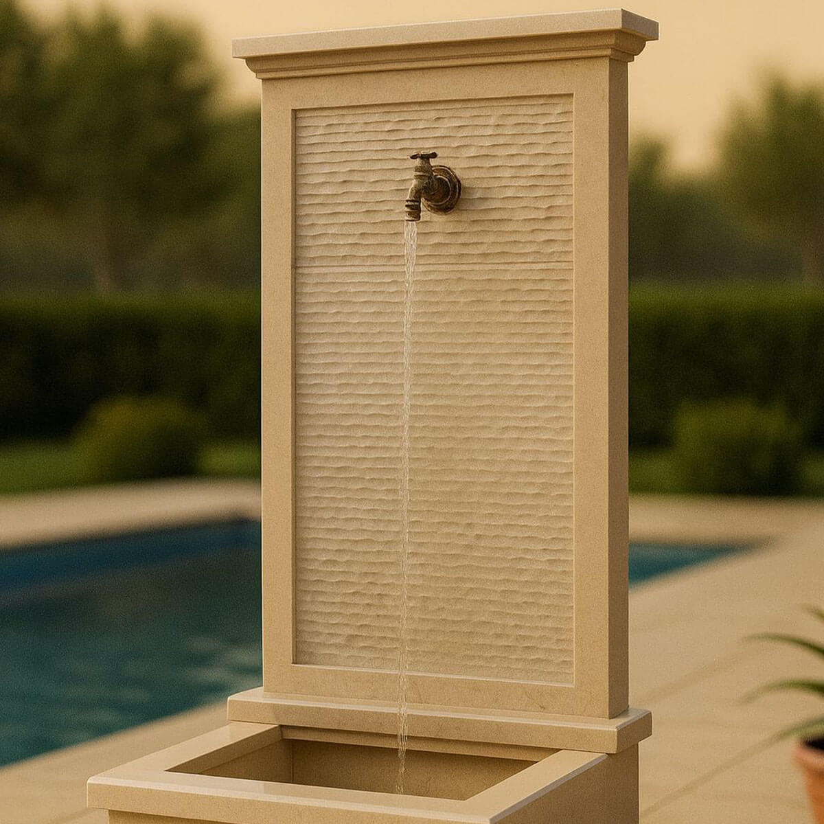 Superbe fontaine murale pour exterieur en marbre Téla couleur gris d’une hauteur de 110 cm. Cette fontaine sera parfaite pour créer un point d’eau dans votre extérieur.