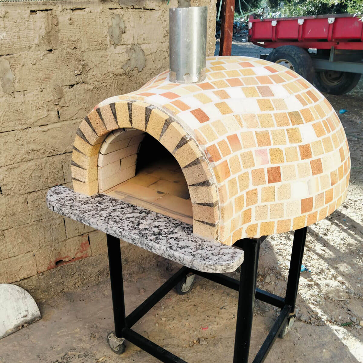 Four à bois et a gaz en briques réfractaire – Ce four à bois est 100% fabriqué artisanalement Trois couches d’isolation industrielle thermique, intérieur en briques réfractaires et ciment fondu – dimensions : 100 et de Ø80cm