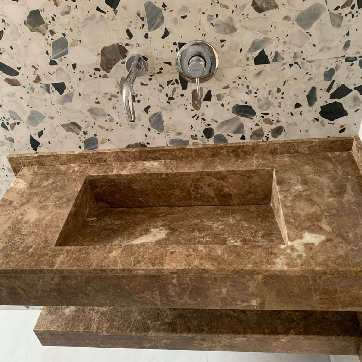 Lavabo suspendue avec etagere en marbre emperador LMEE100