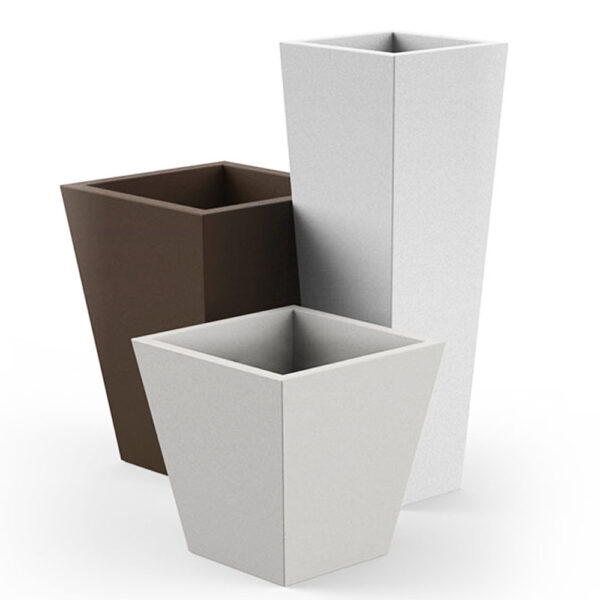 Pot pyramidal haut en résine modèle Cono, trouve toujours sa dimension dans n’importe quel espace, domestique ou commercial. Grâce à son design linéaire et à ses couleurs vives chaque ambiance devient chaleureux, animé et original
