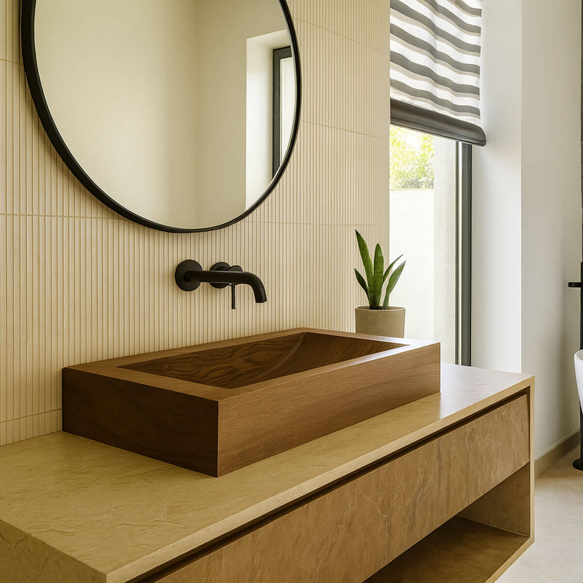 Chaque pièce est unique, fabriquée sur mesure, destnée aux salles de bain haut de gamme, hôtels de charme et projets architecturaux premium.
