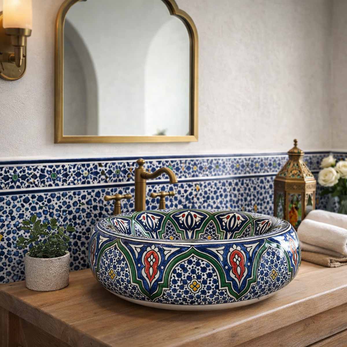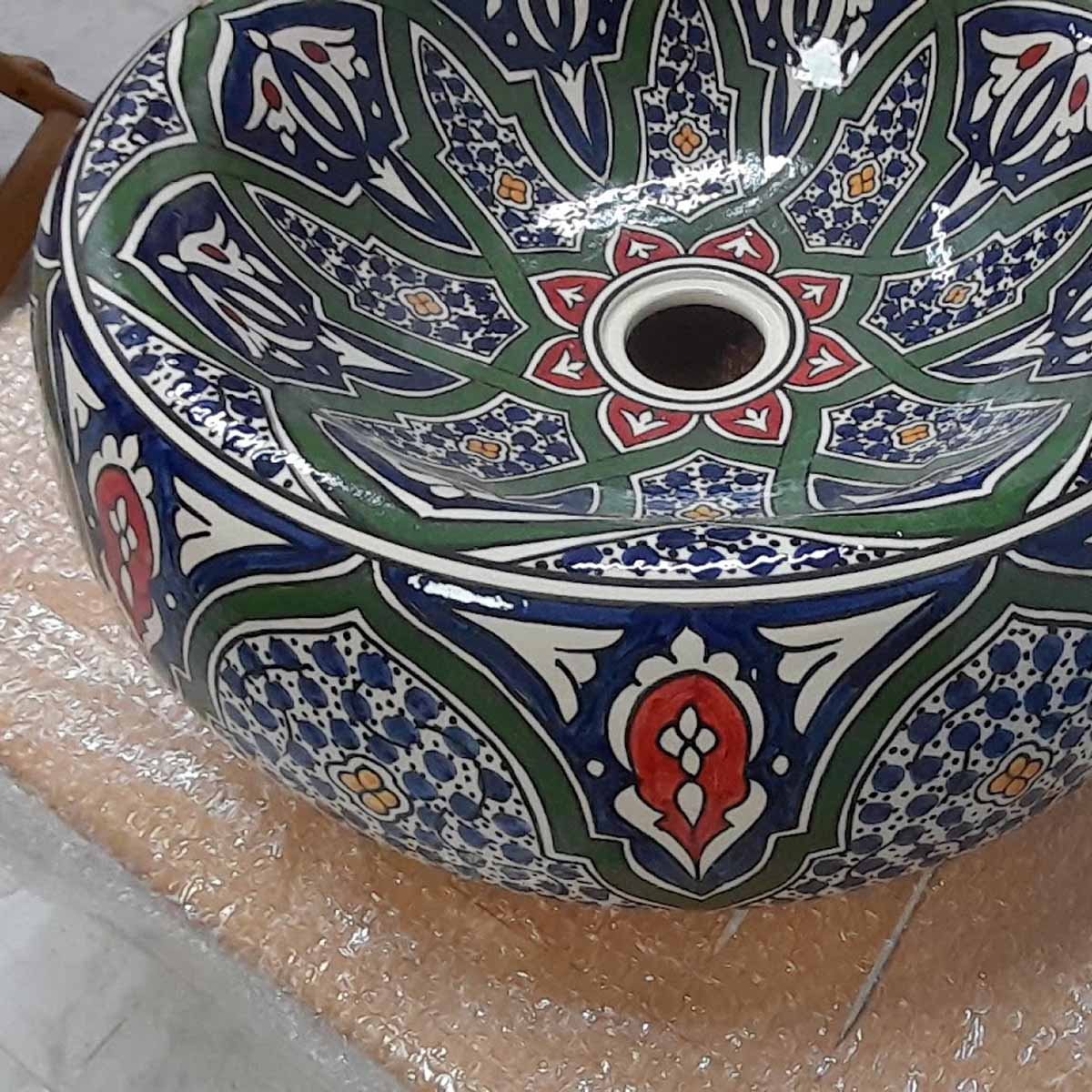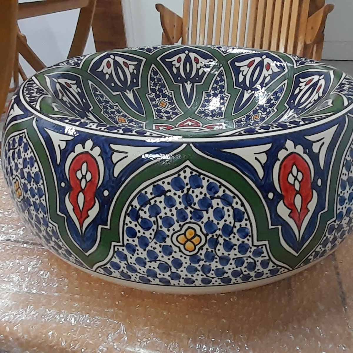Vasque céramique marocain rond fait à la main, pour embellir votre salle de bain ou votre cuisine extérieur – Ø 41 cm – Livraison toute la Tunisie